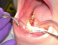 Die Laserfaser wird in die Zahnfleischtasche eingeführt